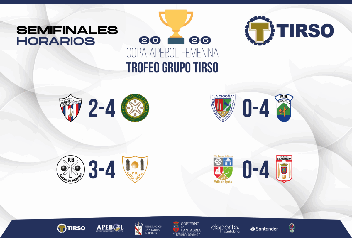 El lunes 9 a partir de las 19:30 horas se enfrentarán Covadal y Peñacastillo Anievas Mayba, mientras que la segunda semifinal entre Carandía Rte. L’Argolla y Camargo tendrá lugar el miércoles 11, también a partir de las 19:30 horas.